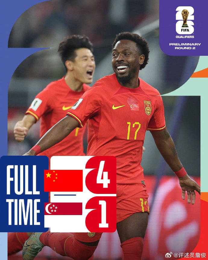 03月26日讯 世预赛亚洲区第二阶段C组,国足主场4-1大胜新加坡,解说员詹俊给出了自己的看法。