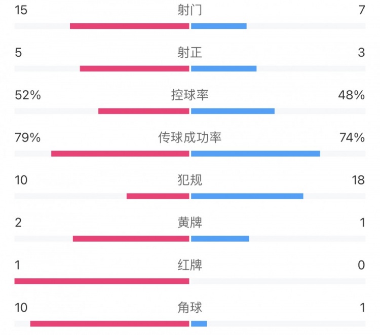 红牌:1-0