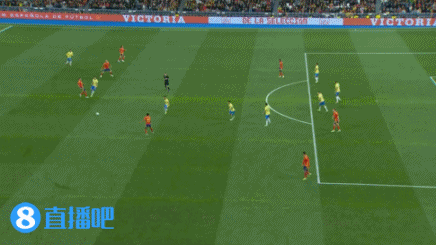 比赛第36分钟,奥尔莫禁区内穿裆过掉贝纳尔多,随后晃开吉马良斯左脚抽射破门,西班牙2-0巴西!