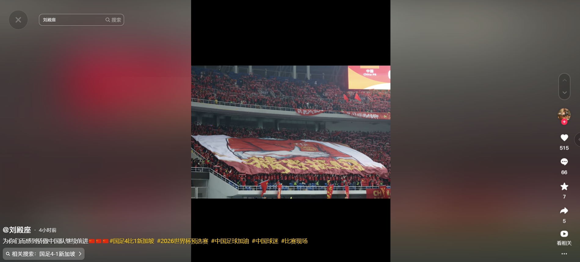 赛后,刘殿座在社媒晒出球迷们加油的画面和一些赛场瞬间,并配文道:“为你们而感到骄傲,中国队继续前进