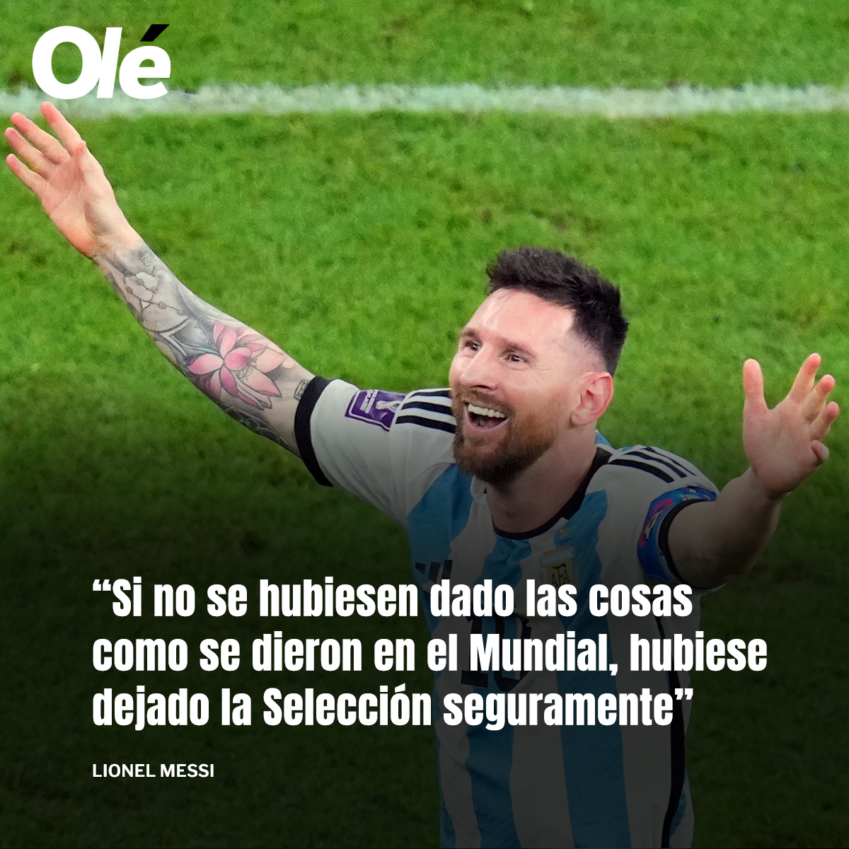 梅西:“如果事情不是世界杯时那样的结果,我肯定会离开国家队。很幸运这发生了,我们为阿根廷夺得了又一个冠军。”