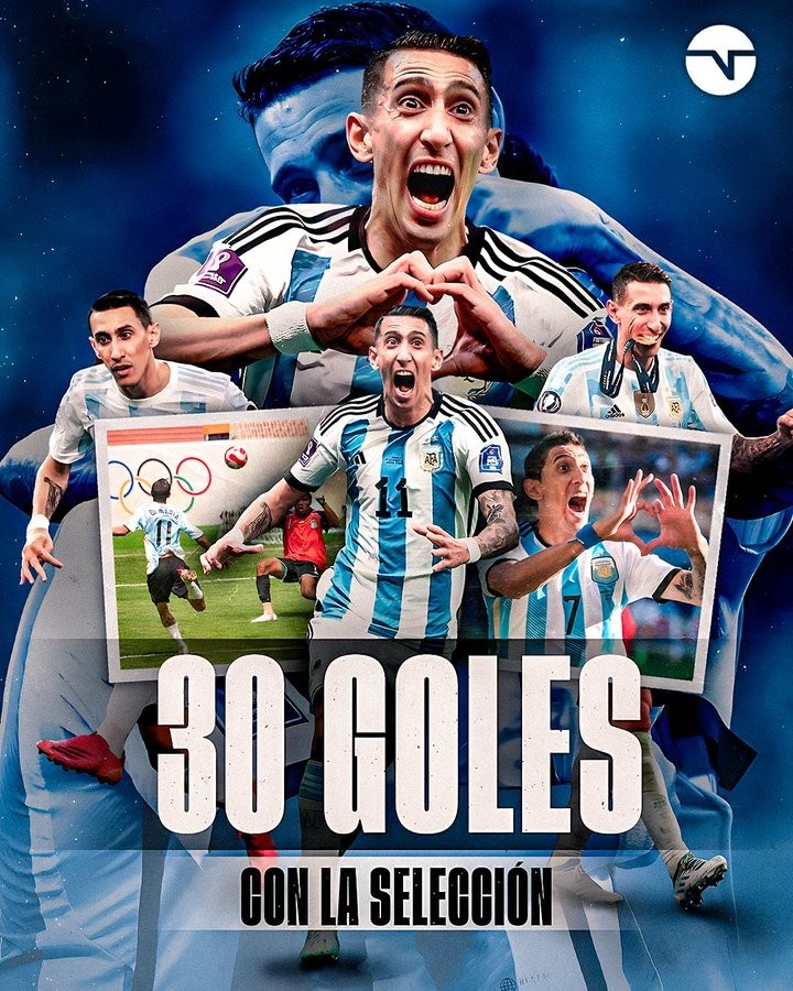 迪马利亚一共代表阿根廷国家队出战了138次,打进30球,并送出了30次助攻。