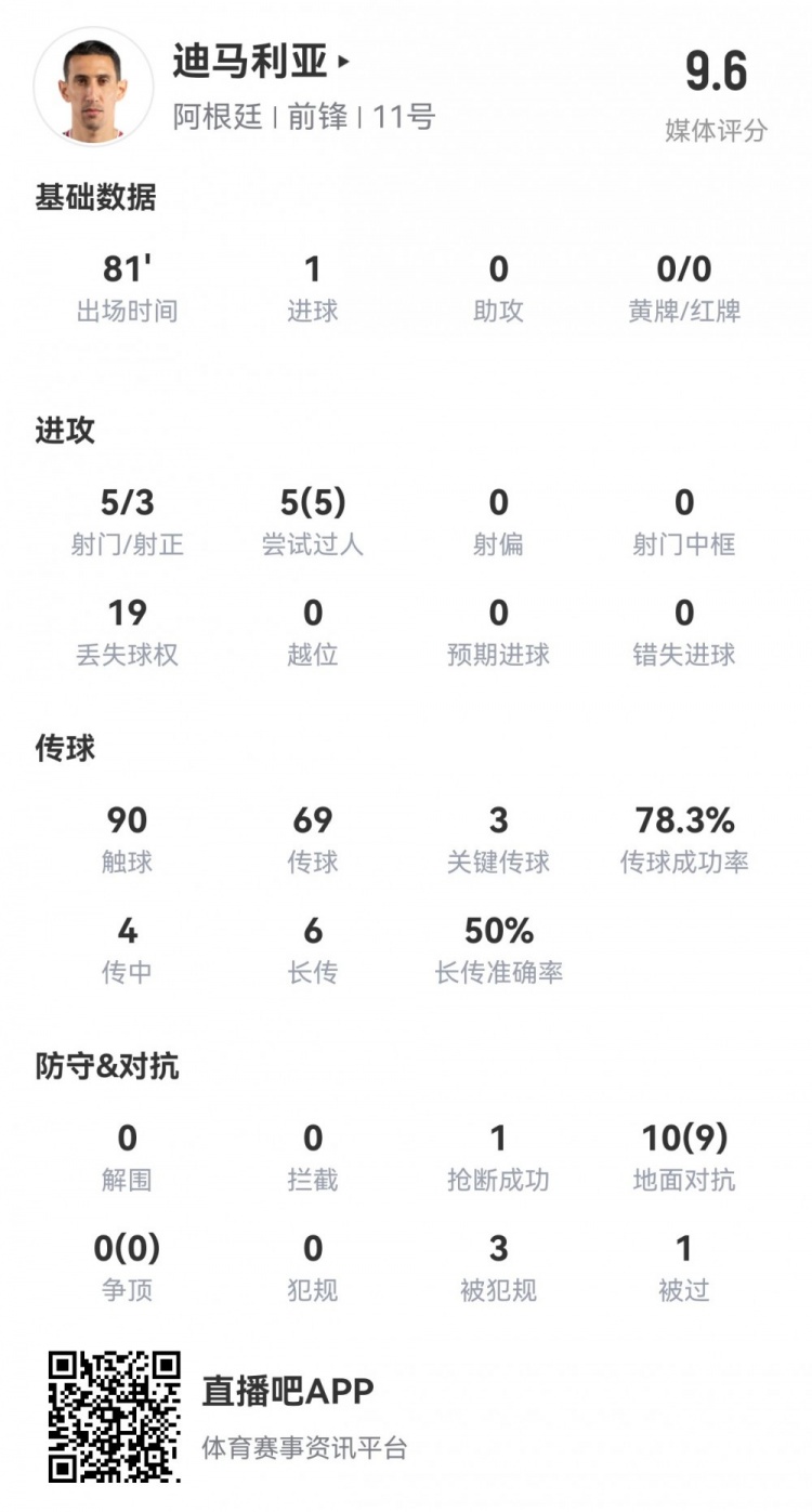3月27日讯 正在进行的友谊赛,阿根廷3-1暂时逆转领先哥斯达黎加。迪马利亚任意球世界波帮助阿根廷扳平比分,球员全场重点数据如下↓
