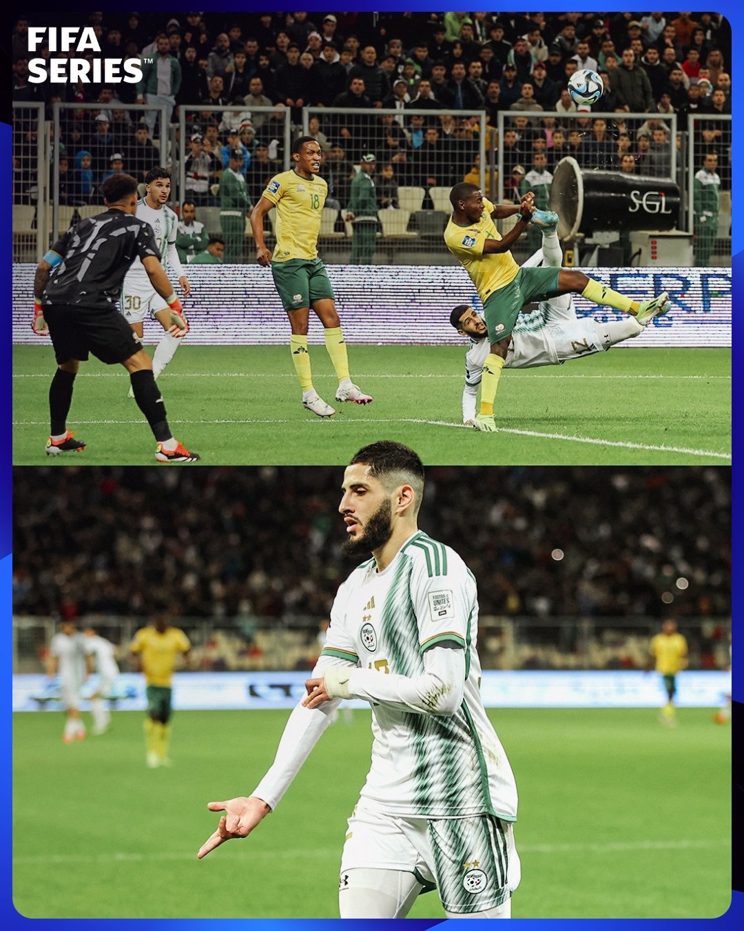 03月27日讯 在昨天进行的一场友谊赛中,阿尔及利亚与南非战成3-3平。比赛中阿尔及利亚球员本齐亚打入了一个精彩的倒钩进球。