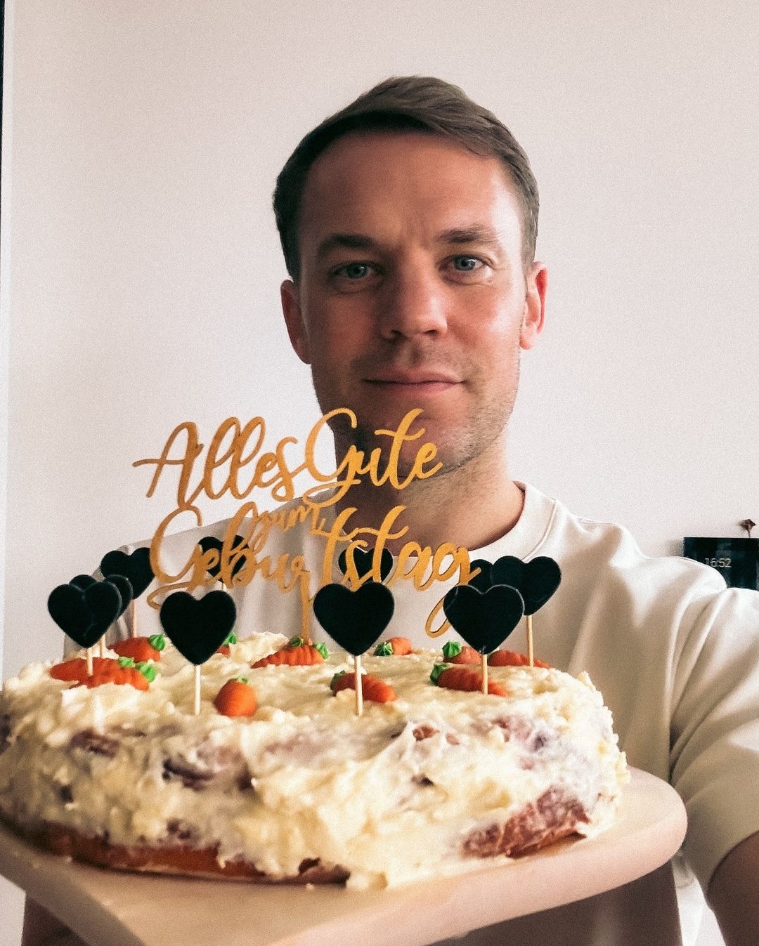 诺伊尔晒出了自己手捧生日蛋糕的照片,并配文道:“感谢你们所有的生日祝福!我非常享受这一切!”