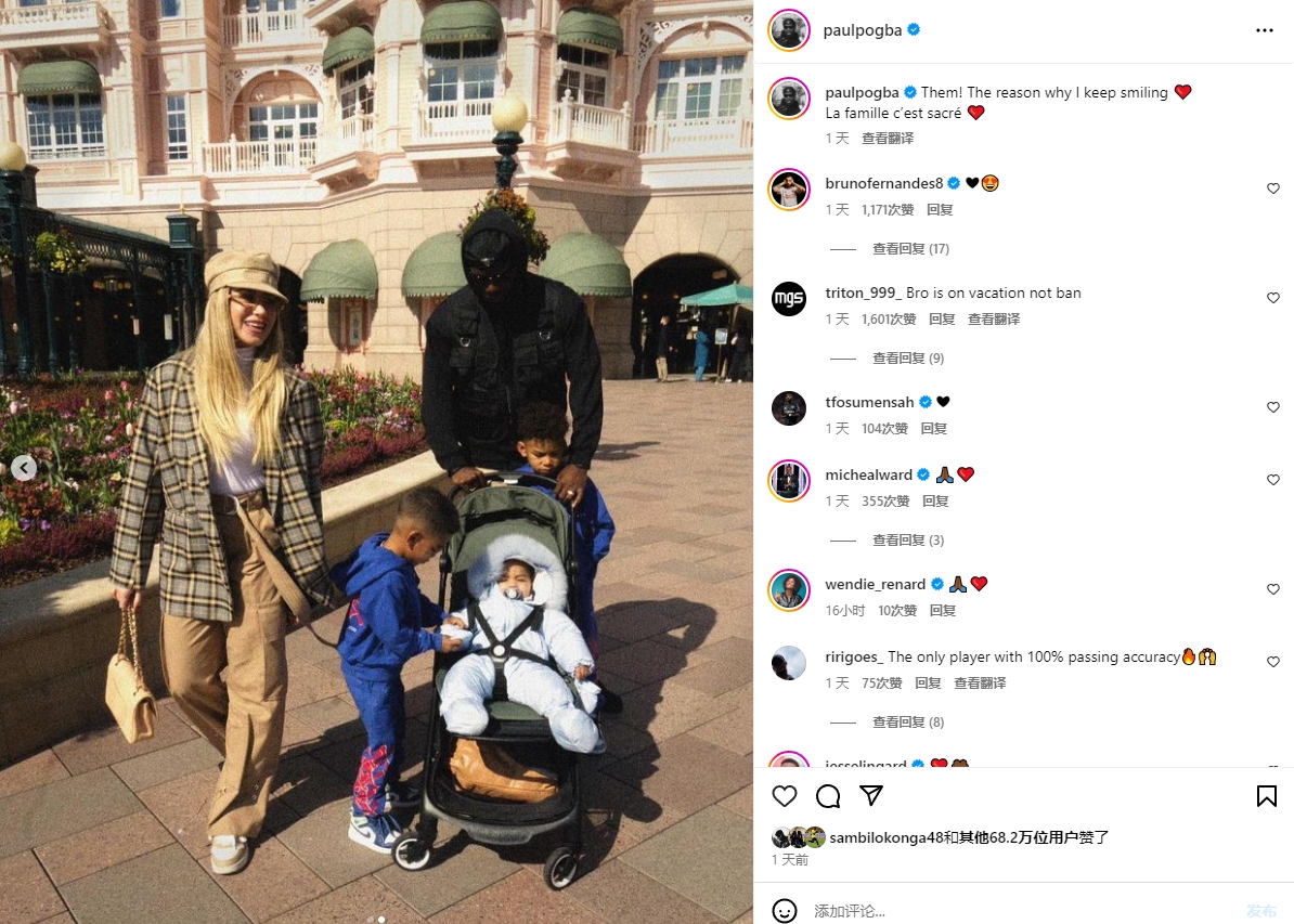 3月28日讯 博格巴更新社媒动态,晒出与家人的合照。