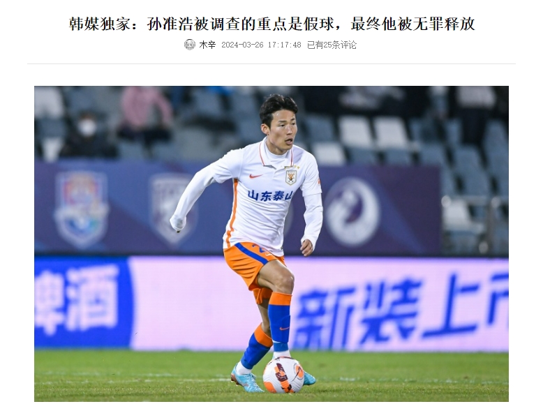 泰山韩国外援孙准浩今日被释放回国,媒体人徐江在回复球迷中保证,孙准浩下球了。