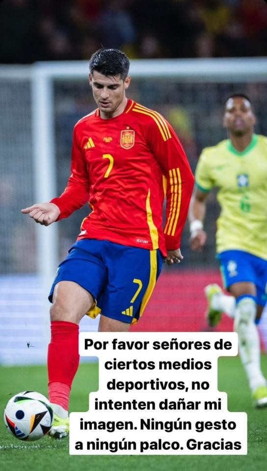 但莫拉塔随后在社交媒体上否认了这些说法,他表示:“某些体育媒体的先生们,请不要尝试破坏我的形象,我没有对任何包厢做任何手势,谢谢。”