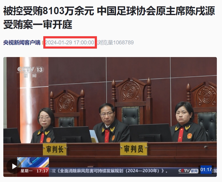 陈戌源一审1月29日上午开庭,17点整公开开庭信息