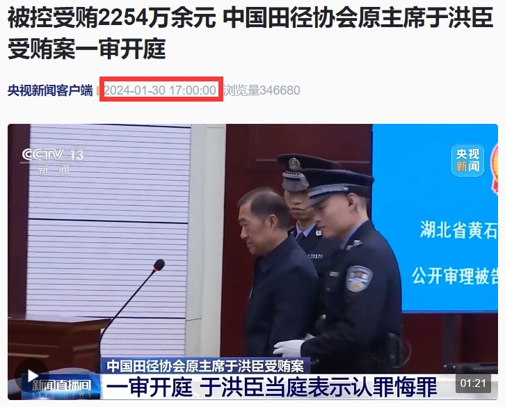于洪臣一审1月30日上午开庭,17点整公开开庭信息