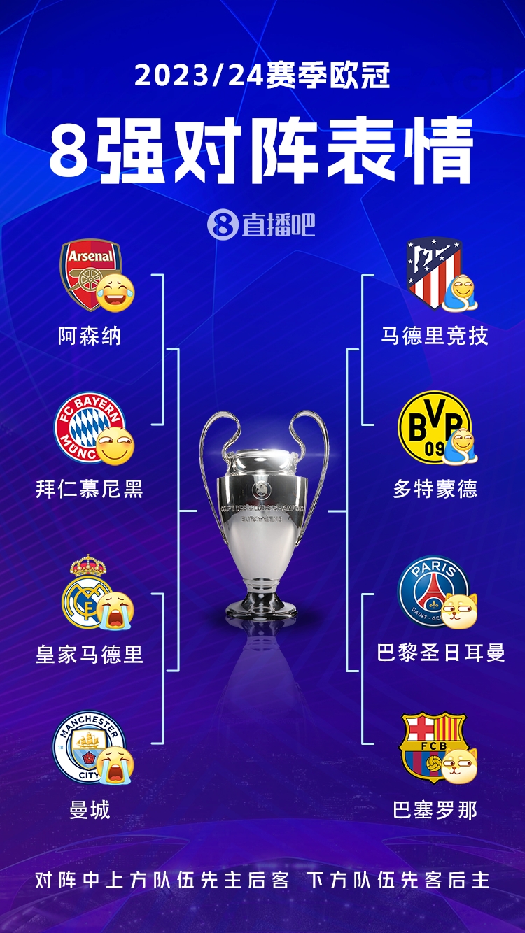 跟你想的一样吗?欧冠8强对阵表情,谁窃笑、谁偷哭、谁也不怕谁