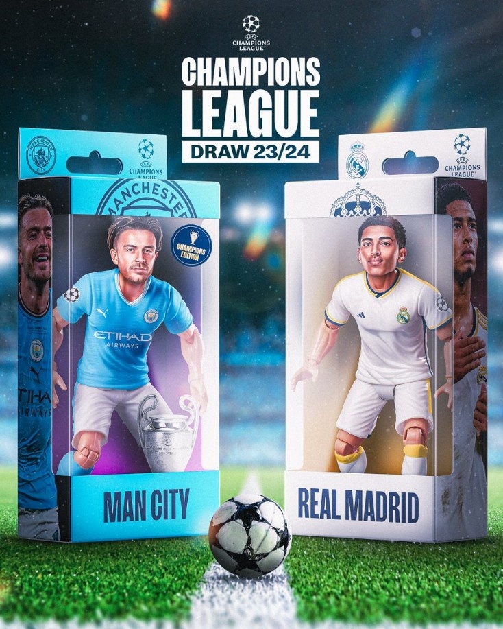 曼城官方也晒出海报为本轮精彩对决预热,海报中格拉利什与贝林厄姆以玩偶手办的形象出镜。