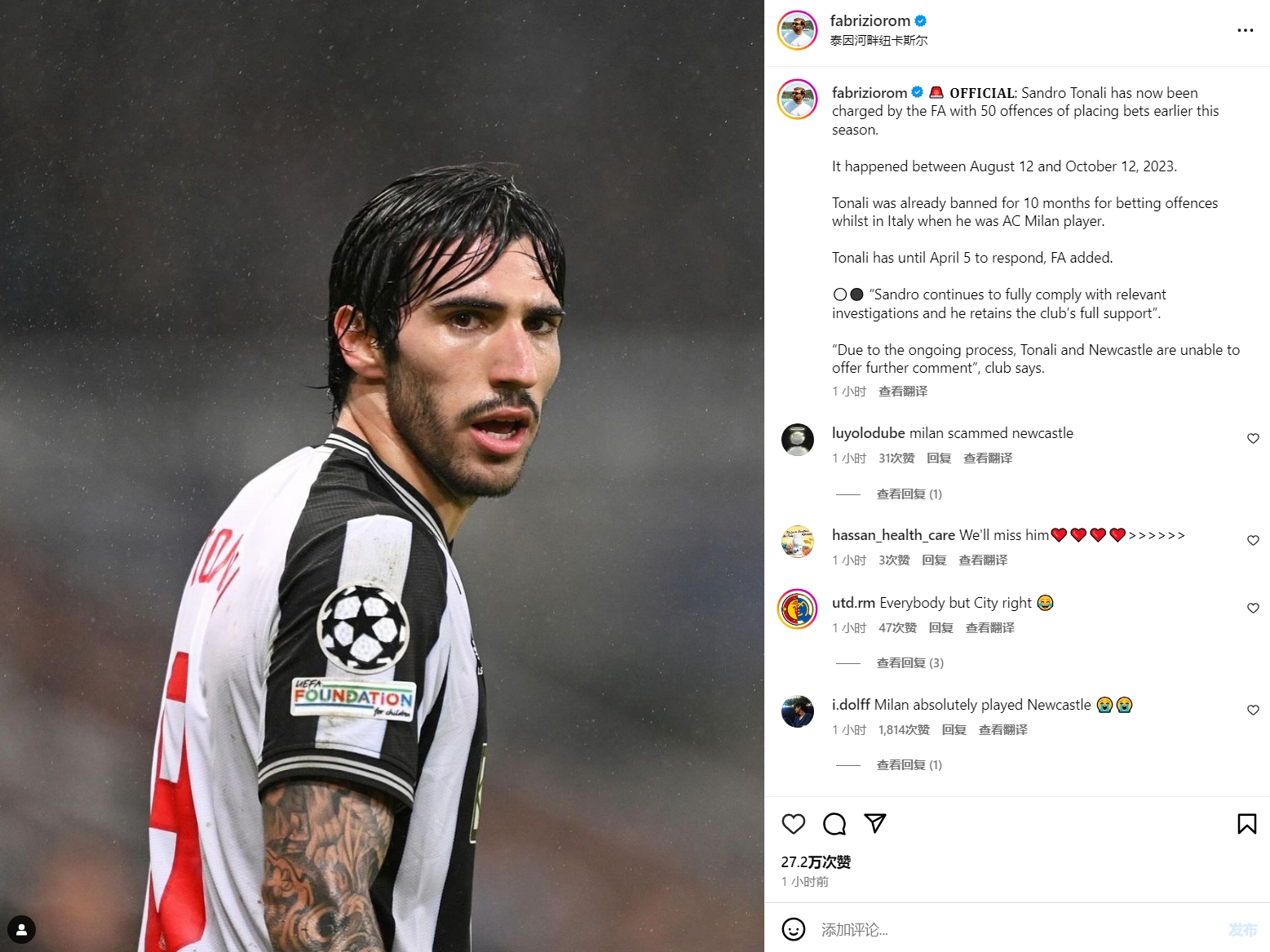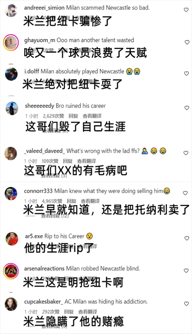 记者罗马诺转载了消息,不少球迷在评论里把矛头指向了米兰。