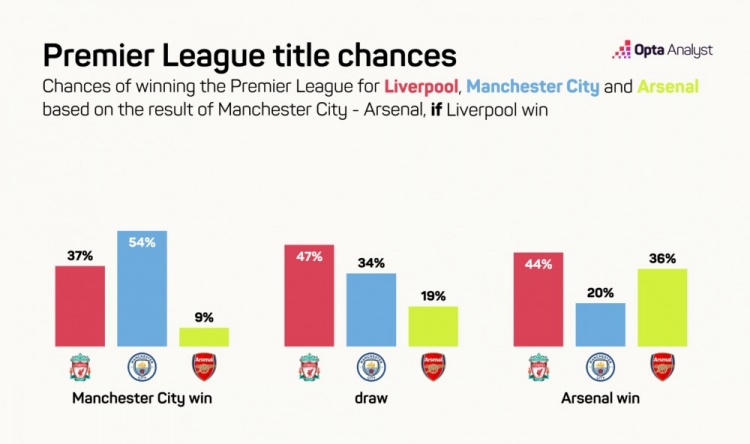 曼城胜:利物浦37%、曼城54%、阿森纳9%
