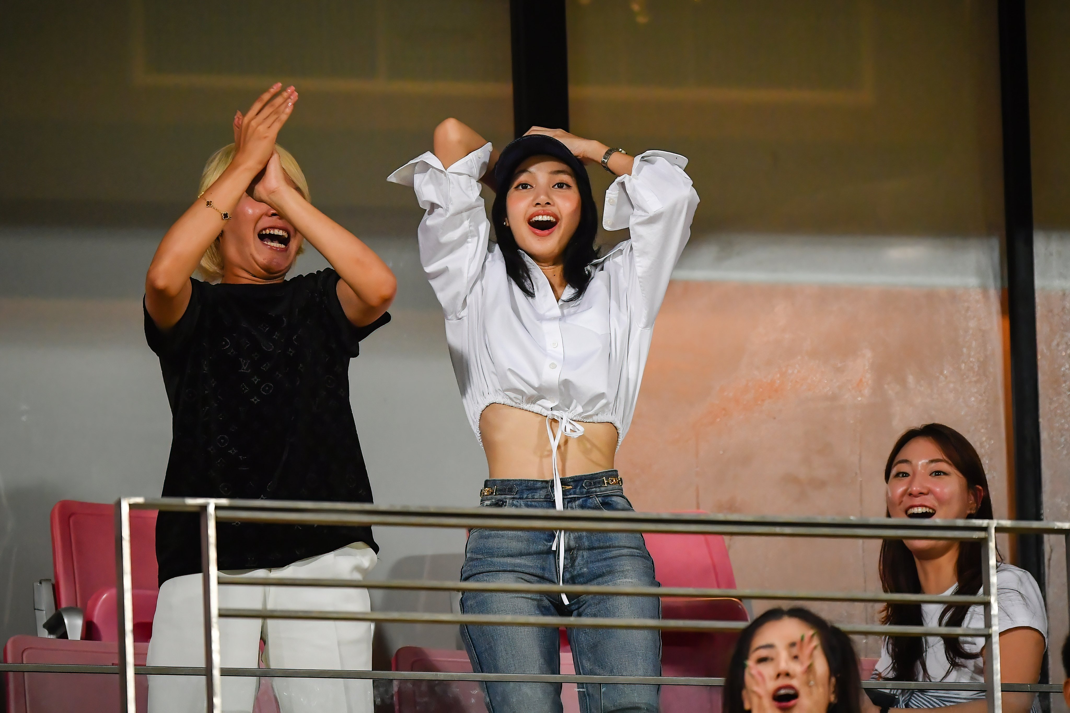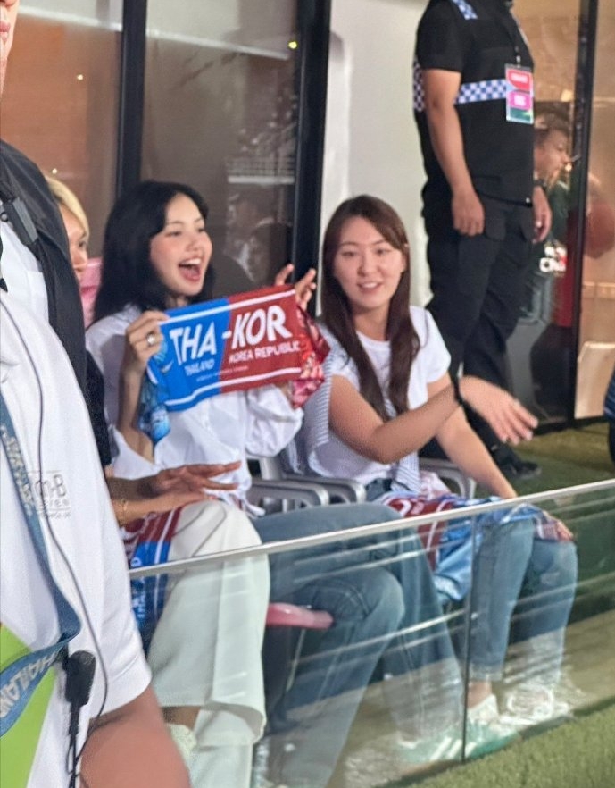 知名韩国女团BlackPink的成员Lisa,现场观战了泰国对阵韩国的世预赛比赛。