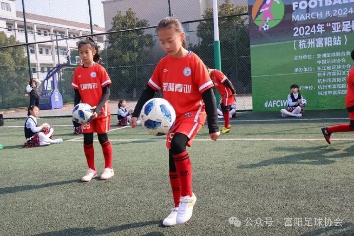 3月8日,2024年“亚足联女足日”女孩足球节活动(杭州富阳站)在春江中心小学顺利开幕!此次活动由亚足联、中国足协主办,浙江省足球协会、杭州市富阳区教育局、杭州市富阳区文化和广电旅游体育局、春江街道承办,区足球协会、春江中心小学执行。在教练员们的带领下,女孩们分组开展了足球火炬冰激凌、抓小鱼、球性球感、合作运球大赛、快速反应等丰富多彩的足球游戏。